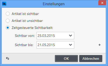 Ein unsichtbarer Artikel verhält sich wie ein gelöschter Artikel; er ist in der erstellten HTML-Seite nicht enthalten. Der Vorteil gegenüber dem Löschen ist, dass Sie den Artikel jederzeit wieder sichtbar machen können.