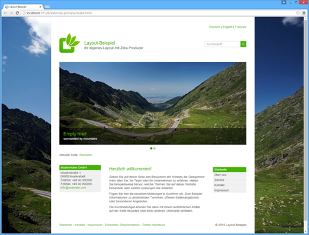 Klicken Sie in Zeta Producer auf Vorschau, damit die Seite extern in Ihrem Standard-Browser angezeigt wird. Das eingefügte Hintergrundbild sollte nun deutlich erkennbar sein.