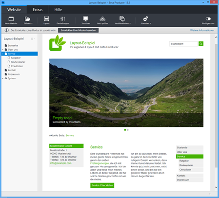 Wechseln Sie nun wieder in Zeta Producer. Da der Entwickler-Live-Modus aktiviert ist, sind die Anpassungen am Layout sofort sichtbar.