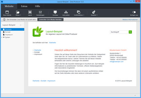 In den Basis-Layouts und dem hier im Beispiel verwendeten Layout ist das Partial searchfield.html enthalten. Dieses Partial ermöglicht über sogenannte named Parameter einige Anpassungen der Darstellung.