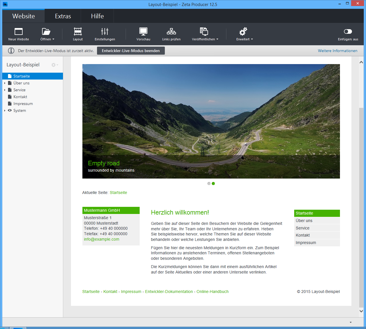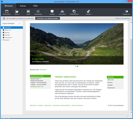 In den Zeta Producer Basis-Layouts und dem Minimal-Layout sind drei Zusatz-Links definiert. In Ihrem eigenen Layout können Sie die Zusatz-Links nun ganz einfach erweitern.